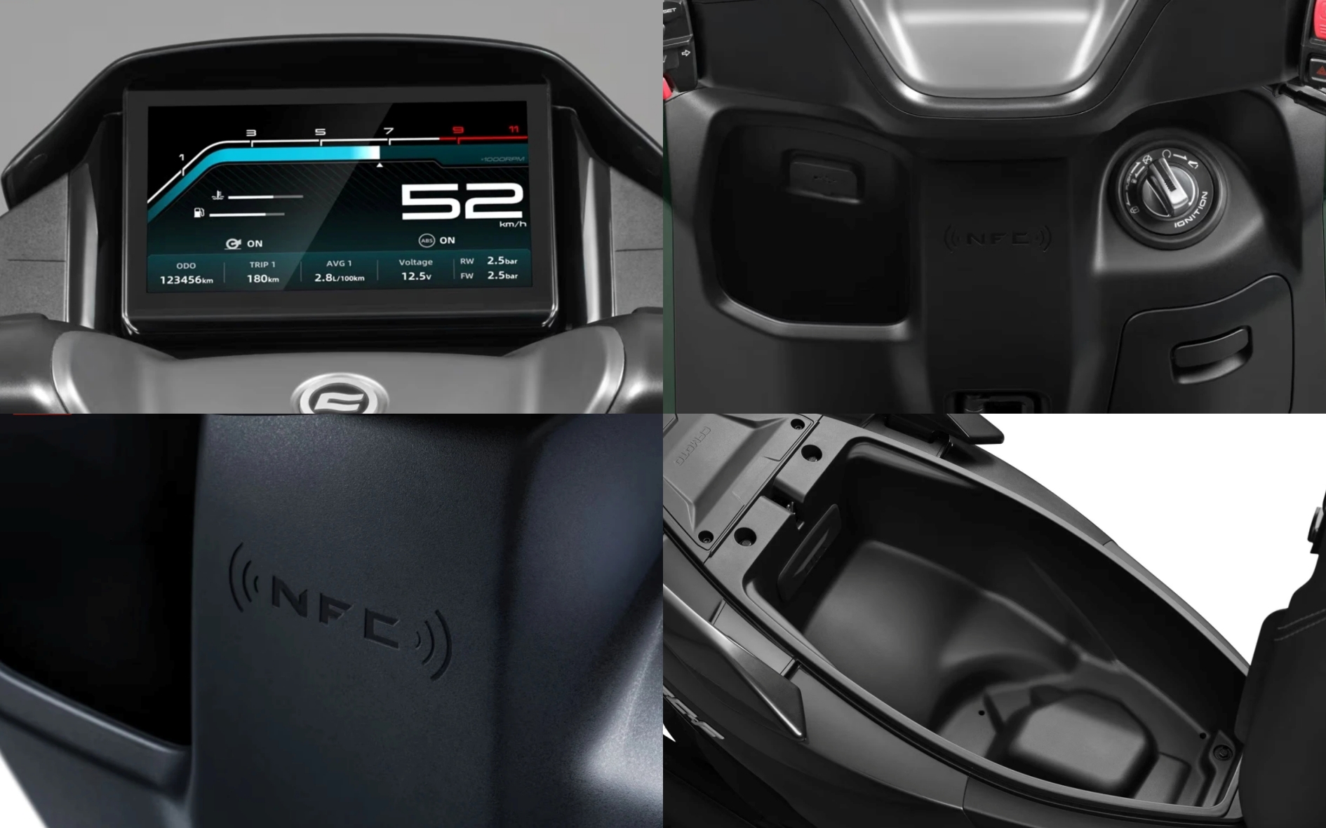 Nhà sản xuất vô cùng tự tin khi khẳng định rằng chiếc xe có thể hoàn thành một quãng đường dài lên tới 350 km chỉ với một lần duy nhất đổ đầy bình nhiên liệu. Ngay bên dưới yên xe là một khoang chứa đồ cực kỳ rộng rãi, có đủ sức chứa một chiếc mũ bảo hiểm trùm kín đầu và một chiếc mũ bảo hiểm nửa đầu cùng một lúc.